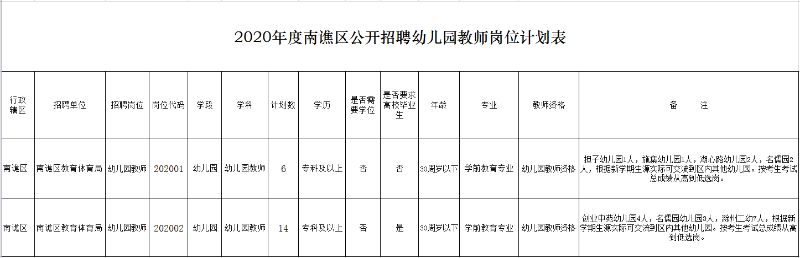 附件:2020年度南譙區公開招聘幼兒園教師崗位計劃表